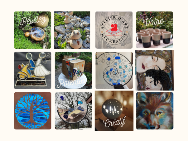 Vous êtes curieux ? Alors, venez nous rendre visite, laissez-vous émerveiller par les oeuvres de l'atelier de création "récréalise" situé près de Chambéry (peinture, mosaïque, vitrail tiffany, chantournage de bois, sculpture-modelage, poterie ...), dont les interprètes ne se seraient pas crus "capables".